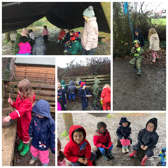 This week, our Lion class had their very first session at Forest School. Despite the rain and the very muddy conditions, the children embraced the different activities, including playing on the rope swing, climbing the tree, playing in the mud kitchen and building dens. Luckily, we had built a shelter for when the heavy rain arrived and we all stayed dry while we chose our Forest School names.